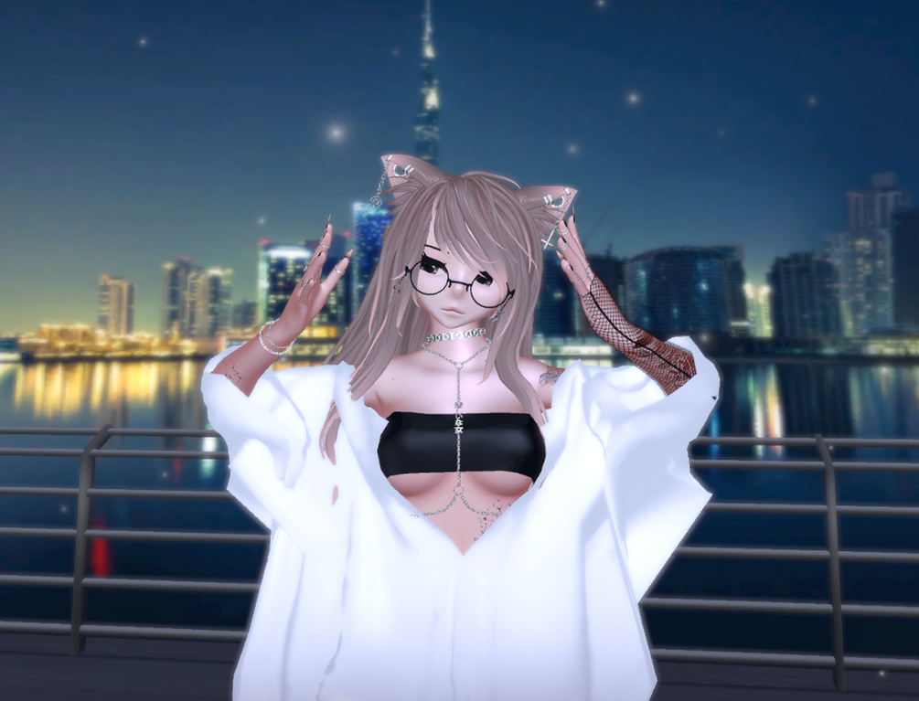 Head base: Onion#1515 Head texture: Onion#1515 (Edited by HawksVR) Body base: Pandaabear#9873 Body texture: yukine#4355 Rings: Aika#6666 (Nitro) Bracelet: ??? (will update when i find out) Choker: ??? (will update when i find out) Fishnet: Boobers#8584 Harness: Nepnewp#4664 Shorts: LeBUBBLES#1234 Shoes: Nepnewp#4664 Skeletontop: ✞𝕭𝖗𝖚𝖈𝖊♡✞#0001 Socks: Maible#8888 Undergarments: Hayweee#1999 Jacket w top: DesiPooh#0705 Earrings: Aika#6666 (Nitro) Long Hair, ponytail: https://wetcat.gumroad.com/ Septum: https://booth.pm/en/items/2172582 Cat ears: Boobers#8584 Glasses: https://ikshop.booth.pm/items/1483281 Elf ears: OniiGirii#5977 Tail: cockwee#5331 Spring joints: https://brex.booth.pm/ Locomotion: https://wetcat.gumroad.com/l/locomotionVRC, Body Chain: https://pnkvrc.gumroad.com/l/sadwomanchain?ref=jinxxy