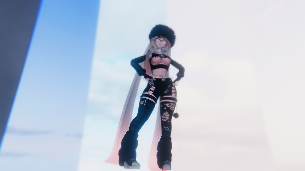 Head base: minki, Head texture: minki (Edited by NekozakiSenpai), Body base: Pandaabear#9873, Eye texture: Roadkill Rabbit, Body texture: Remys, Nail texture: Zeniyy, 3D lashes: nessyvr, Facial piercings: Blake_D, GogoLoco: franada, DPS: Raliv, Necklace: Blenity, BellyPiercing: Skulli, BodyPiercings: DaddyIssuez, Buckled skirt: Boo, Buckled Shirt: Skittles, Bunny backpack: Apyr, Bunny chain mouth: SockEmBopEm, Bunny ears: Bunny n Kitty, Bunny tail: Bunny n Kitty, Simple Choker: Prem, Garter pompoms: SockEmBopEm, Glasses: Salted, Hair: nessyvr, Hand warmers: heavensdead, Hat: Apyr, Heartsweater: minki, Heels: Skittles, Butterfly shorts: Yukina, Shawty hoodie: hoeyume, Oversized pants: miruu, Belt: heavensdead, Pasties: Cupkake, Ponytail: PastelPlushies, Rings: Boo, Chest chain: PNK, Shoes: Vertex Vixens, Chain waist: SockEmBopEm, Socks: ccwuvschu, Stitch choker: Skulli, Open sweater: Boo, Tank top: ??? (Will update when I can find it), Undergarments: Shizuki, Leg warmers: Torment, Dynamic Receivers: Rafa, Bunny plushie: LittleSaku