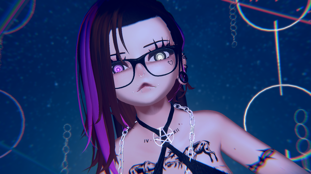 Head base: minki, Head texture: minki (Edited by NekozakiSenpai), Body base: Pandaabear#9873, Eye shader: Doublegänger, Body texture: KOLD (Edited by NekozakiSenpai), 3D lashes: nessyvr, GogoLoco: franada, DPS: Raliv, Pasties: Cupkake, Hair: PastelPlushies, Rings: Boo, Facial piercings: ❀LittleSaku❀ & Skulli, Belly piercing: Cupkake, Biker set: It's Yukina, bracelet: SamVr, Chains: Yes Please Ty, Choker: 𝒞𝓁𝒾𝓅 ഒ, Dress: Moon Mango, ear gauges: beanie baby, Fishnets: Kay, Fox ears: Oliver, Bodysuit & pants: ??? (Will update when I can find it), Tail: Larens, Glasses: 3's Lodge, Goggles: ℜ𝔦𝔱𝔲a̶͂̅𝔩 𖤐, Harness: Yes Please Ty, HAIR CAP: ZinPia, Heels: Oliver, Helmet: Darcy, Rolex: Void, Undergarments: Shizuki, Vans: Plaz, Vans texture: dizmaral, Top: Hayweee, Marker: vrLabs, Cigarette system: Garn Servo, Monster can: Drippy Pasta Emporium